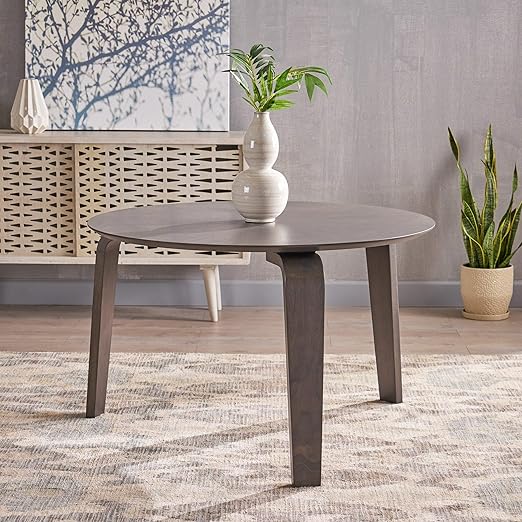 Noble House Round Mid Century Dining Table In Dark Gray Amazon Co