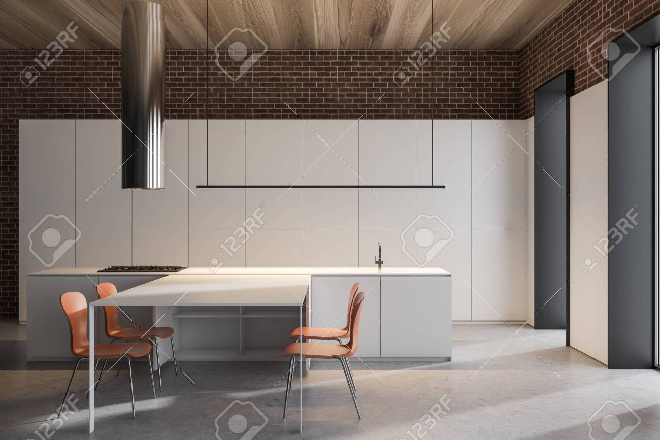 Modern Industrial Style Kitchen Interior With White And Brick