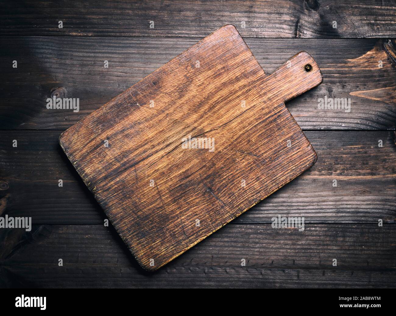 Old Kitchen Board On A Black Wooden Table Cutting Board Stock