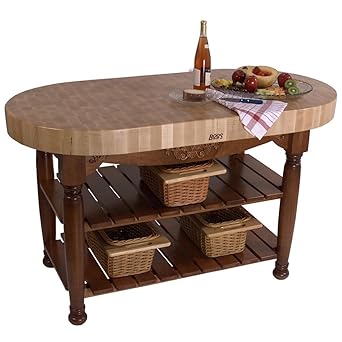 John Boos Maple Cream Finish Black Base Harvest Table 60 X 30 X 4