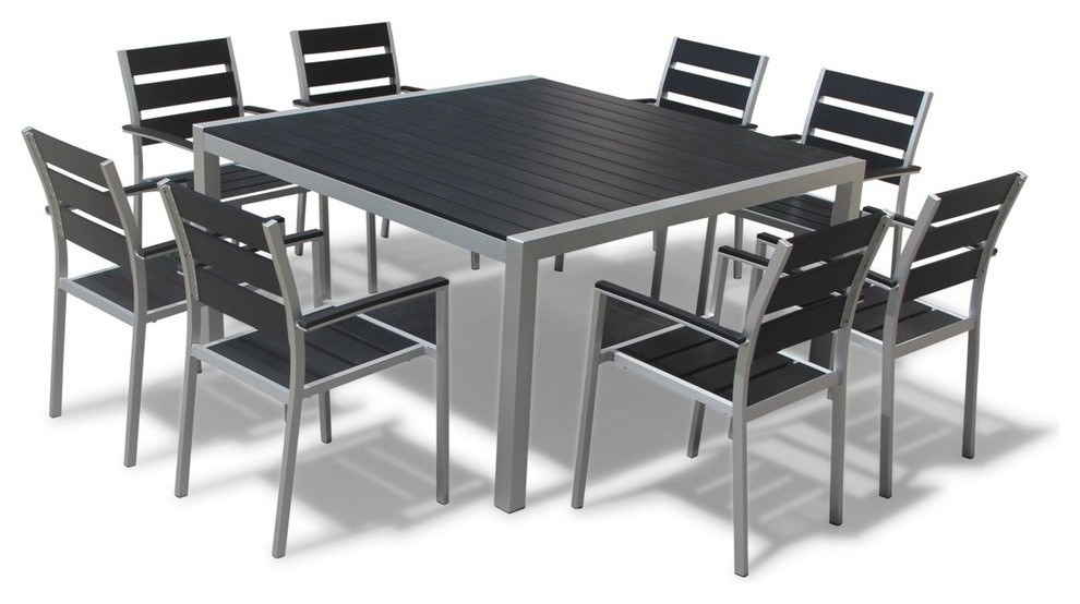 Outdoor Aluminum Resin 9 Piece Square Dining Table And Chairs Set
