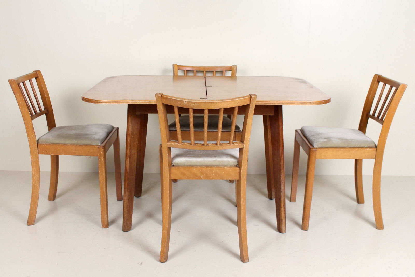 Retro Vintage Oak Dining Table And Chairs 4 Chairs Modular Desk
