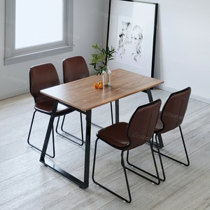 Vintage Wooden Dining Table And 4 Pu Leather Chairs Set Home