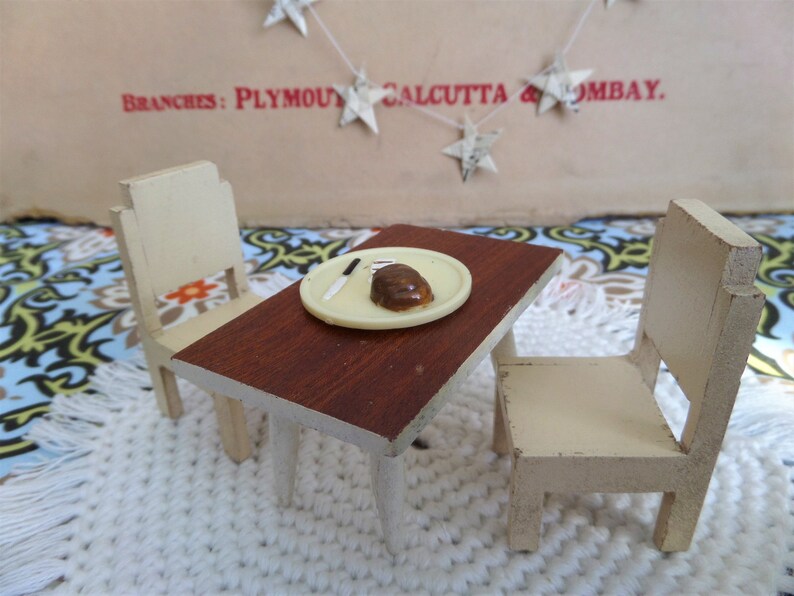 Vintage Wooden Dol Toi Kitchen Table And 2 Cream Painted Etsy