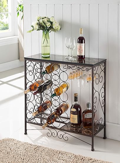 Amazon Com Hombazaar Industrial Wine Rack Table With Glass Holder