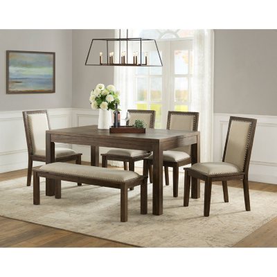 Fulbright Weathered Gray 6pc Dining Table 4 Chairs Bench
