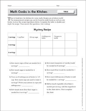 Math Cooks In The Kitchen Table Printable Skills Sheets