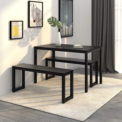 Modern Dining Table And 2 Benches Set Kitchen Restaurant Furniture