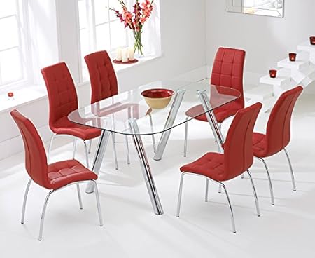 Oak Furniture House Boston 160cm Glass Dining Table 6 Red Chairs