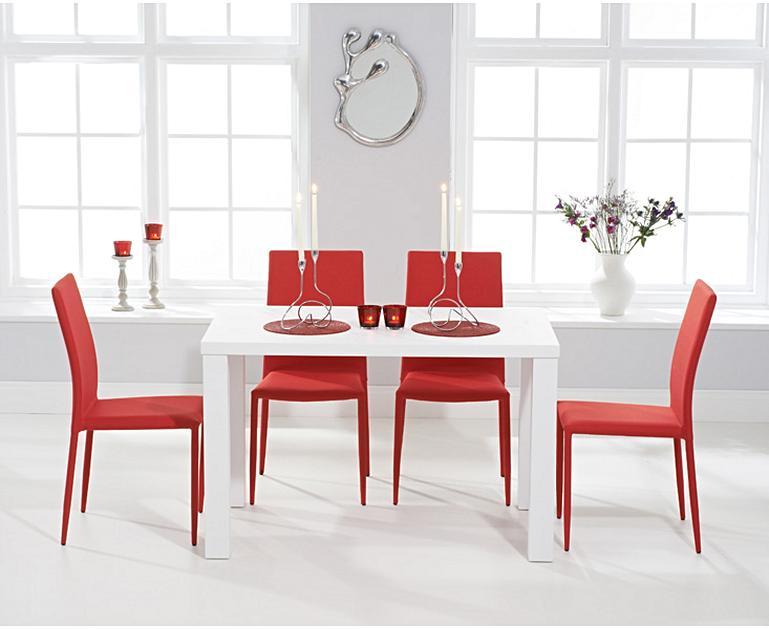 Arturo Dining Table Rectangular In White With 4 Red Chairs