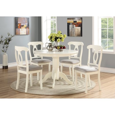 5 Piece Dining Table Set 4 Chairs Round Table Wood Kitchen