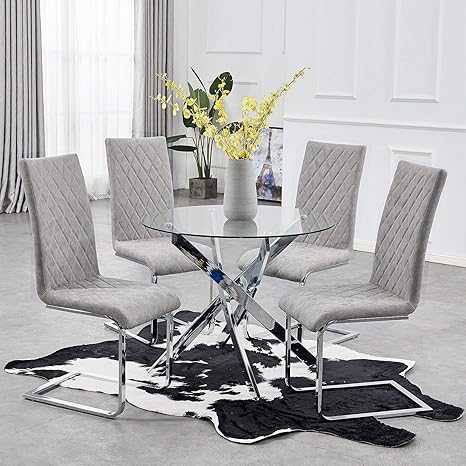 Tonvision Clear Glass Dining Table And 4 Grey Chairs Set Stable