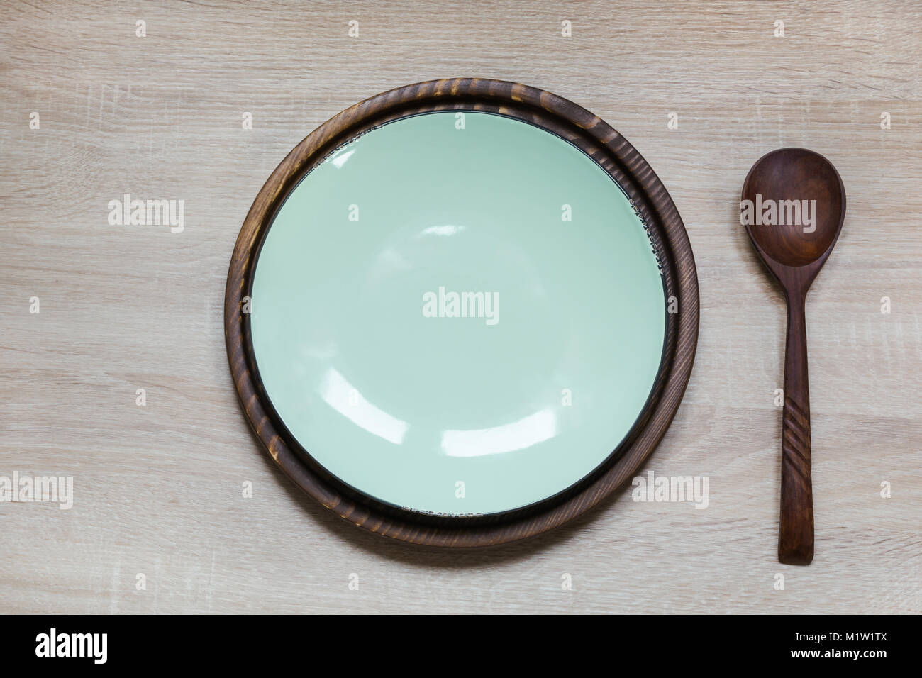 Elegance Table Set With Turquoise Plate On Wooden Table Top