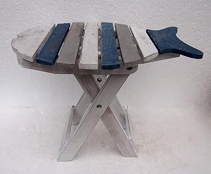 Unusual Folding Rustic Fish Table Hand Made Blue Grey White Shabby