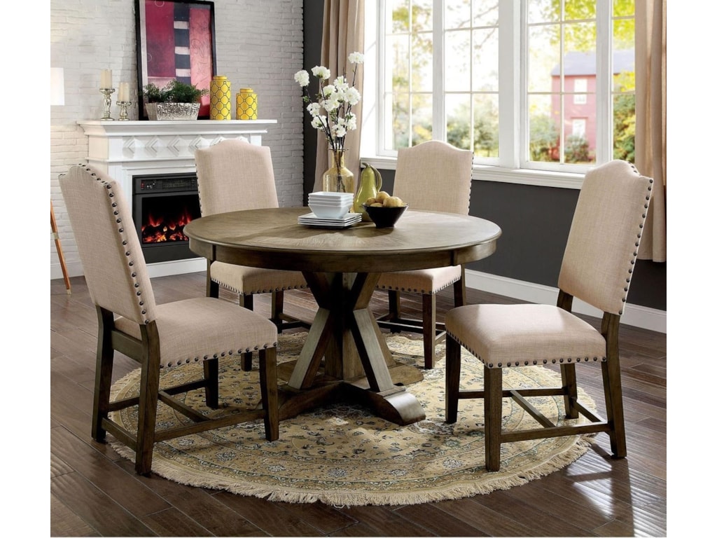 Julia Vintage Round Table And 4 Side Chairs Dining Set Household