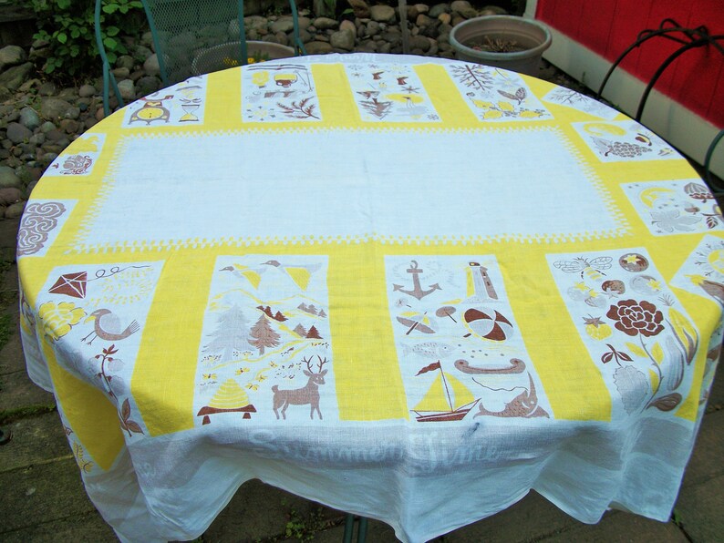 Vintage Kitchen Tablecloth Cloth Simtex Rustic Cabin Camp Lodge