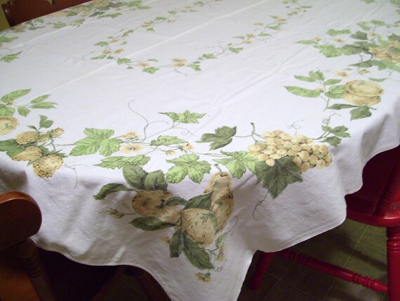 Vintage Kitchen Tablecloth 46 X 60 Inches Fruit Green And