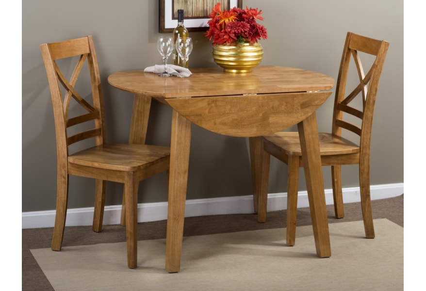 Alaska Oak Round Drop Leaf Dining Table Set 2 Chairs Wooden