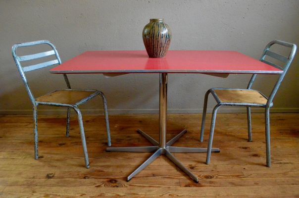 Vintage Retro Mcm Mid Century Red Formica Chrome Metal Dining