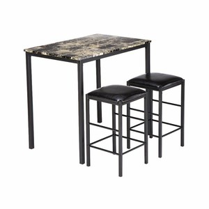 Marble Dining Table And 2 Chairs Cushion Kitchen Bar Retro 3pcs