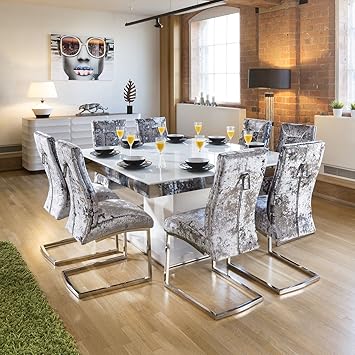 Avant Garde Large Square White Glass Gloss Dining Table 8 Silver