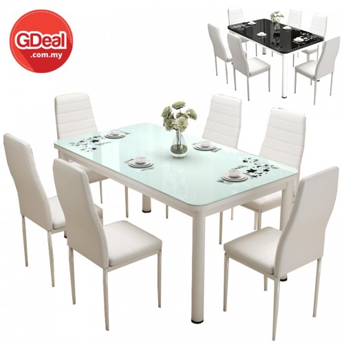 Simple Modern Rectangle Tempered Glass Top Dining Table Set With 6