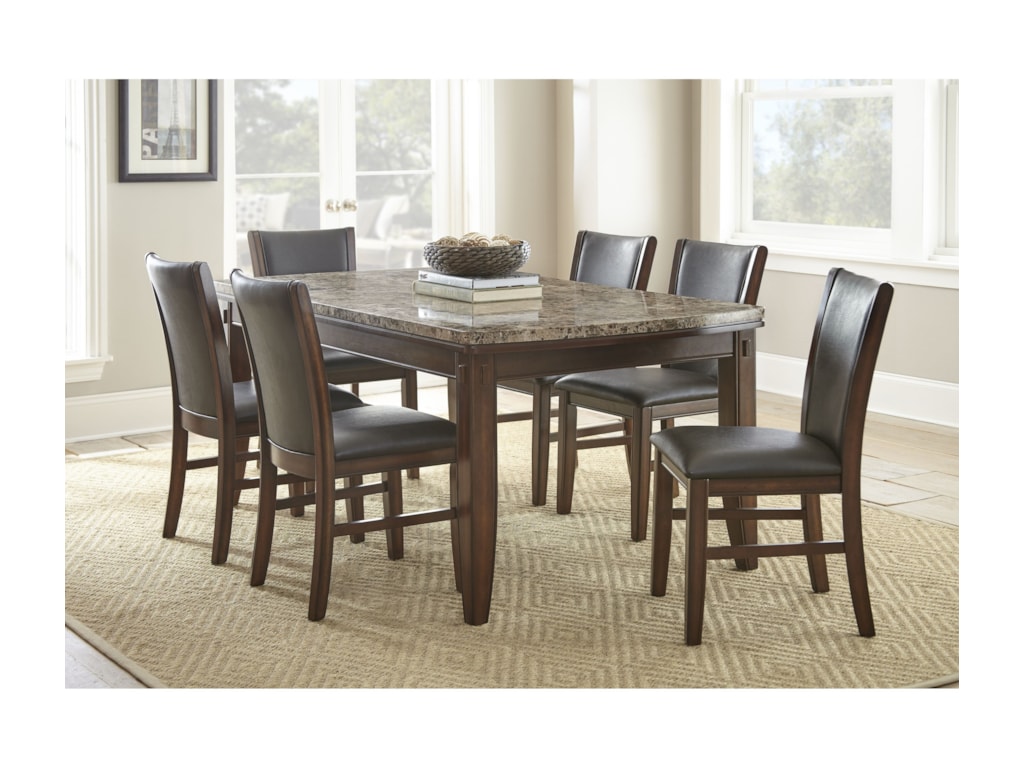Steve Silver Eileen 7 Piece Brown Marble Topped Dining Table With