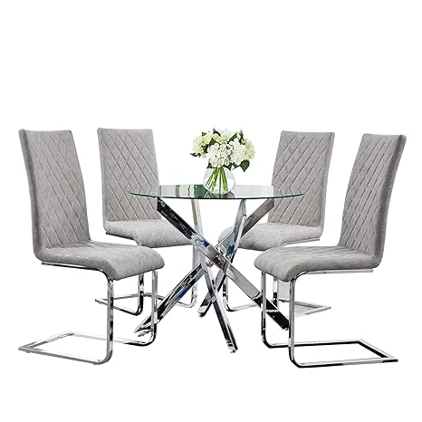 Gizza Transparent Round Glass Dining Table And 4 Distressed