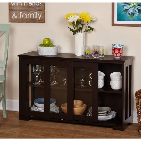 Sliding Tempered Glass Doors Stackable Storage Buffet Cabinet Home