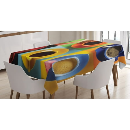 Kitchen Tablecloth Cups Of Coffee Tea Hot Chocolate On Colorful