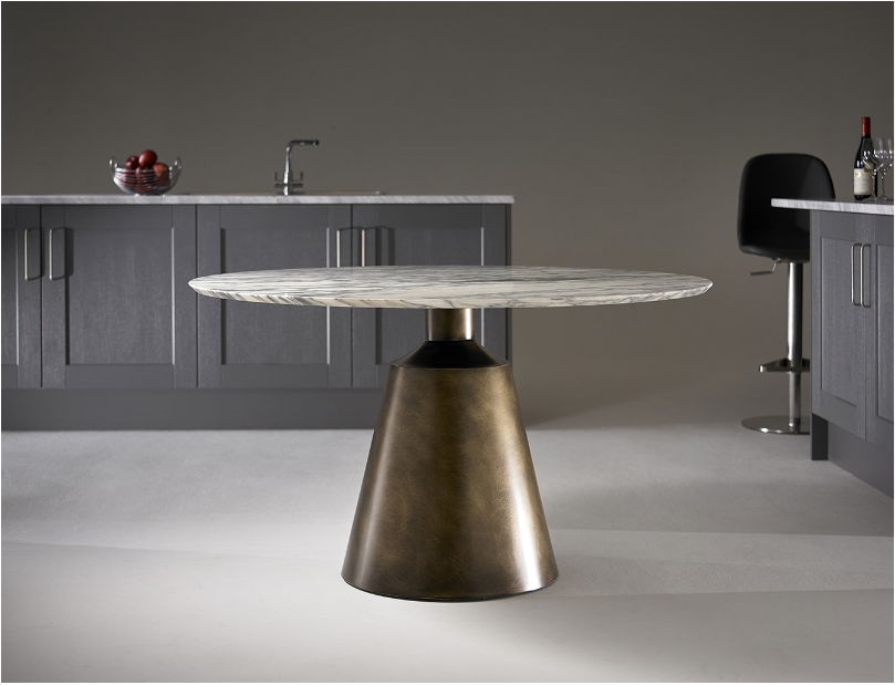 Molbard Round Kitchen Dining Table Marble Or Granite Top Brass And