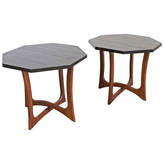 Pair Of Mid Century Modern Sculptural Slate Top Walnut End Etsy