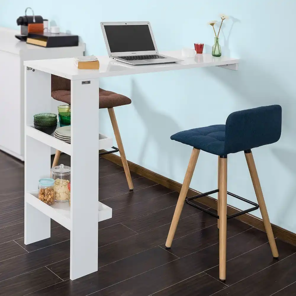 Haotian wall mounted drop leaf table folding kitchen dining table desk solid wood children tablehome office table desk workstation computer desk with storage shelves trestle desk fwt03 w 40 out of 5 stars 160. Add a folding chair or two and you can get a complete dining area that takes minimal space when youre not using it. 40 out of 5 stars 51.
