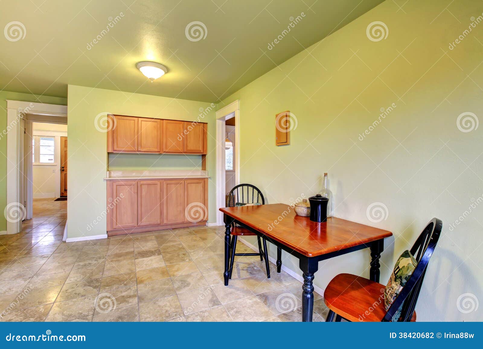 Green Kitchen Room With A Dining Table Set Stock Photo Image Of