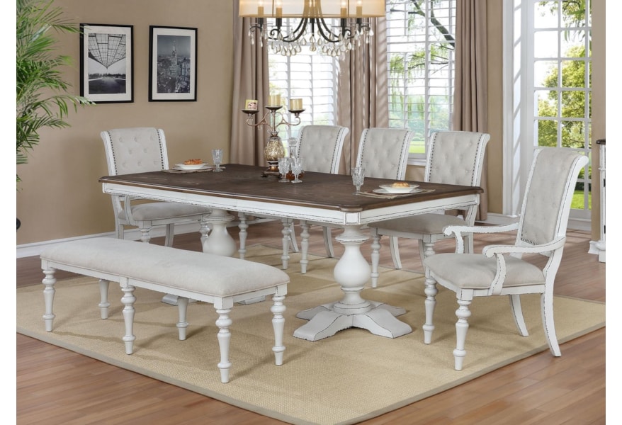 Crown Mark Bardot Cottage 7 Piece Dining Set With Upholstered