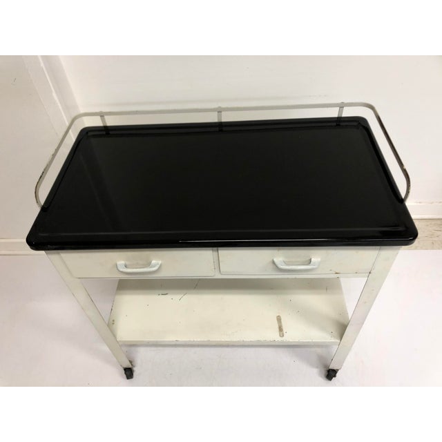 Vintage White Medical Table With Black Enamel Top Chairish
