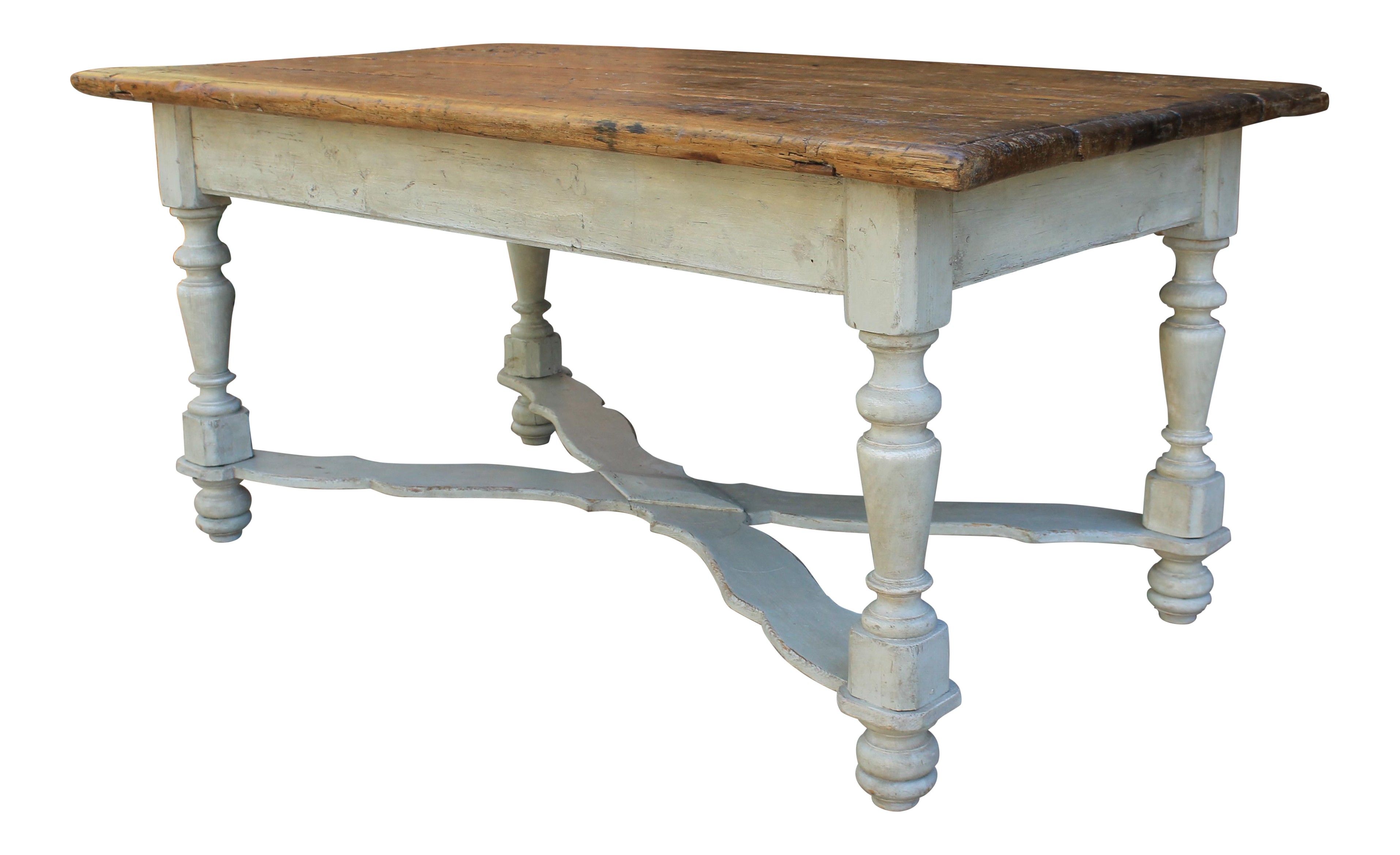Antique French Country Pine Painted Oak Farmhouse Dining Table