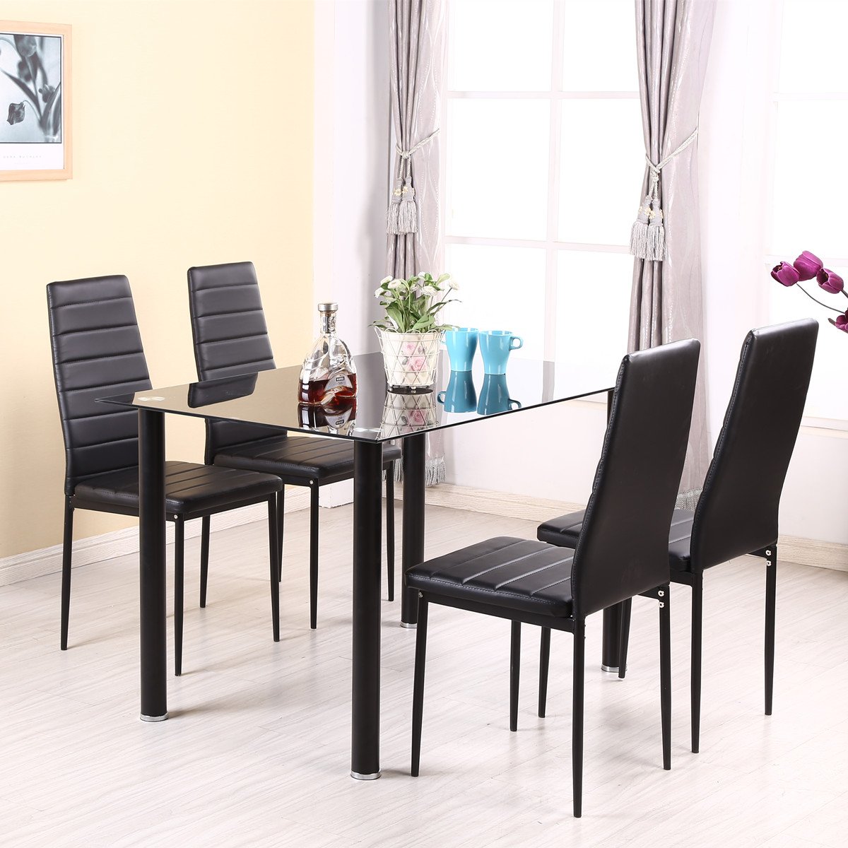 Qihang Uk Dining Table And 4 Chairs Set Black Glass Dining Table