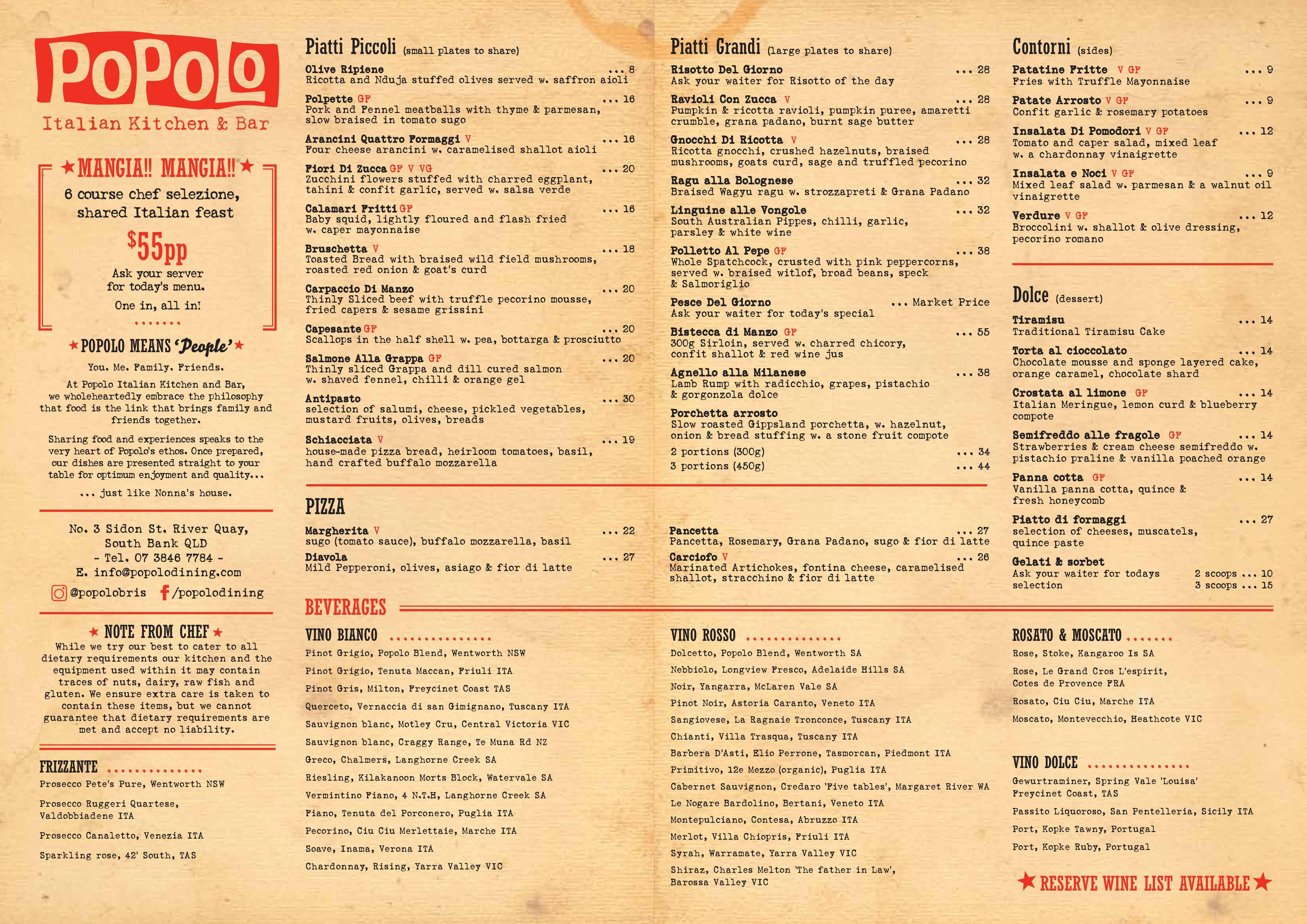 Popolo Menu Menu Untuk Popolo South Bank Brisbane