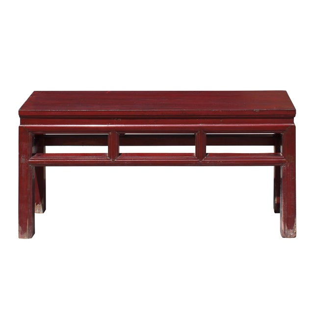 Oriental Zen Ming Style Wood Distressed Red Brown Stain Bench