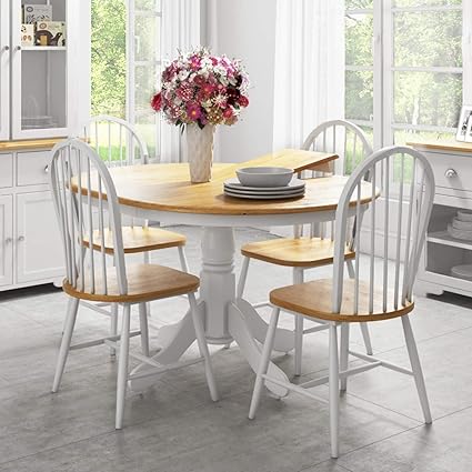 Round Extendable Dining Set With 4 Chairs In Oak White Rhode