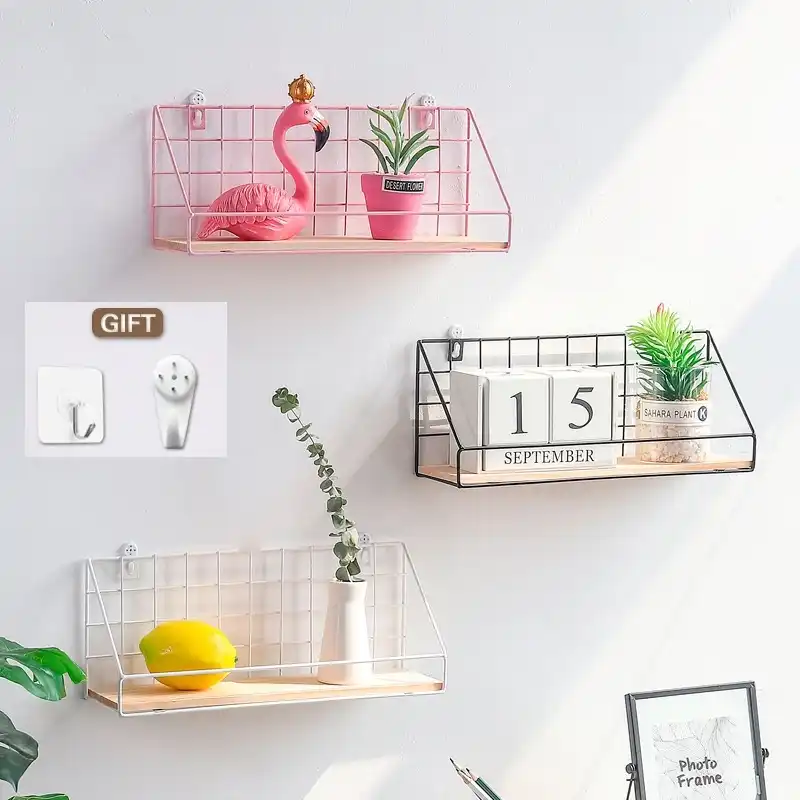 Wall Mounted Floating Shelves Rustic Metal Wire Storage Shelves