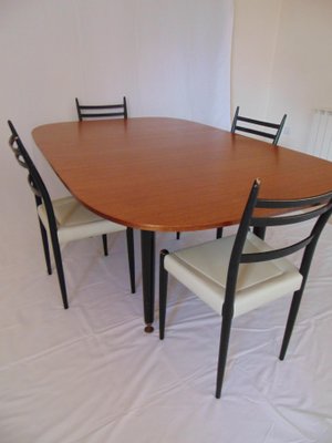 Vintage Teak Extending Dining Table Chairs Set 1950s For Sale