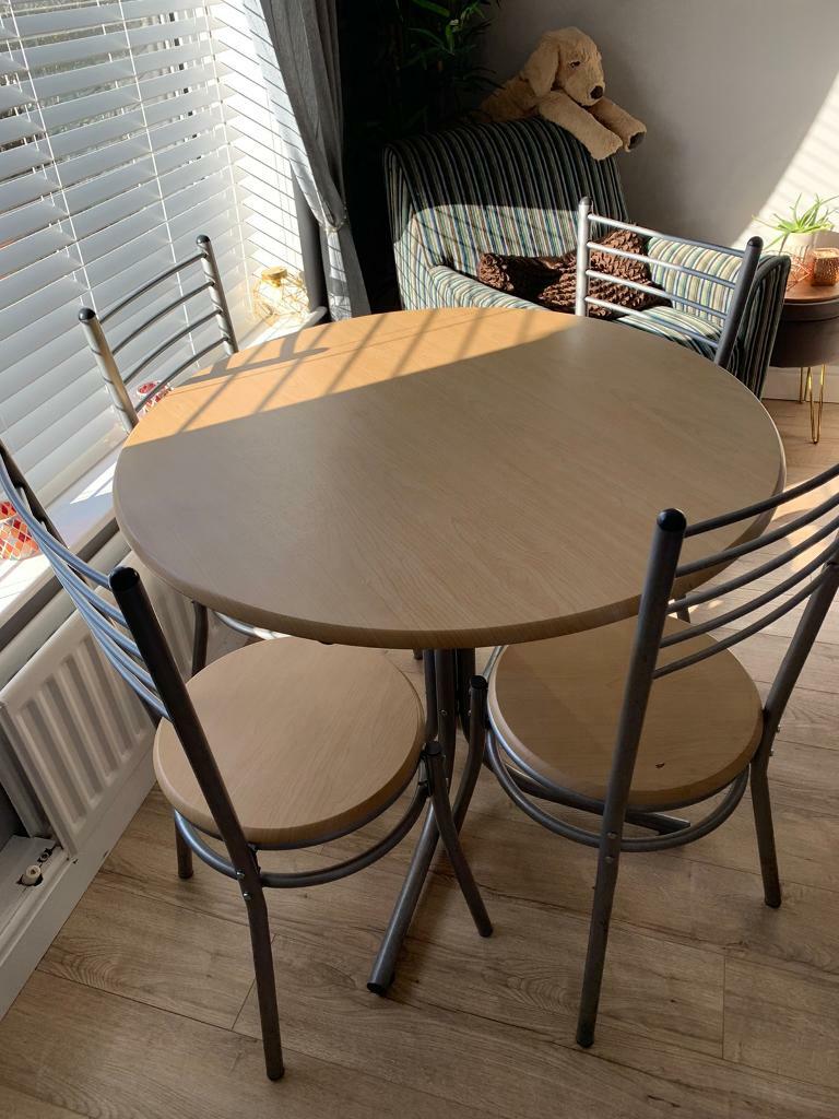Round Wooden Kitchen Dinning Room Table With 4 Chairs In