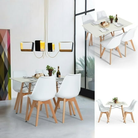 Dining Rectangle Table 4 Pu Chairs Set Kitchen Dinning Room
