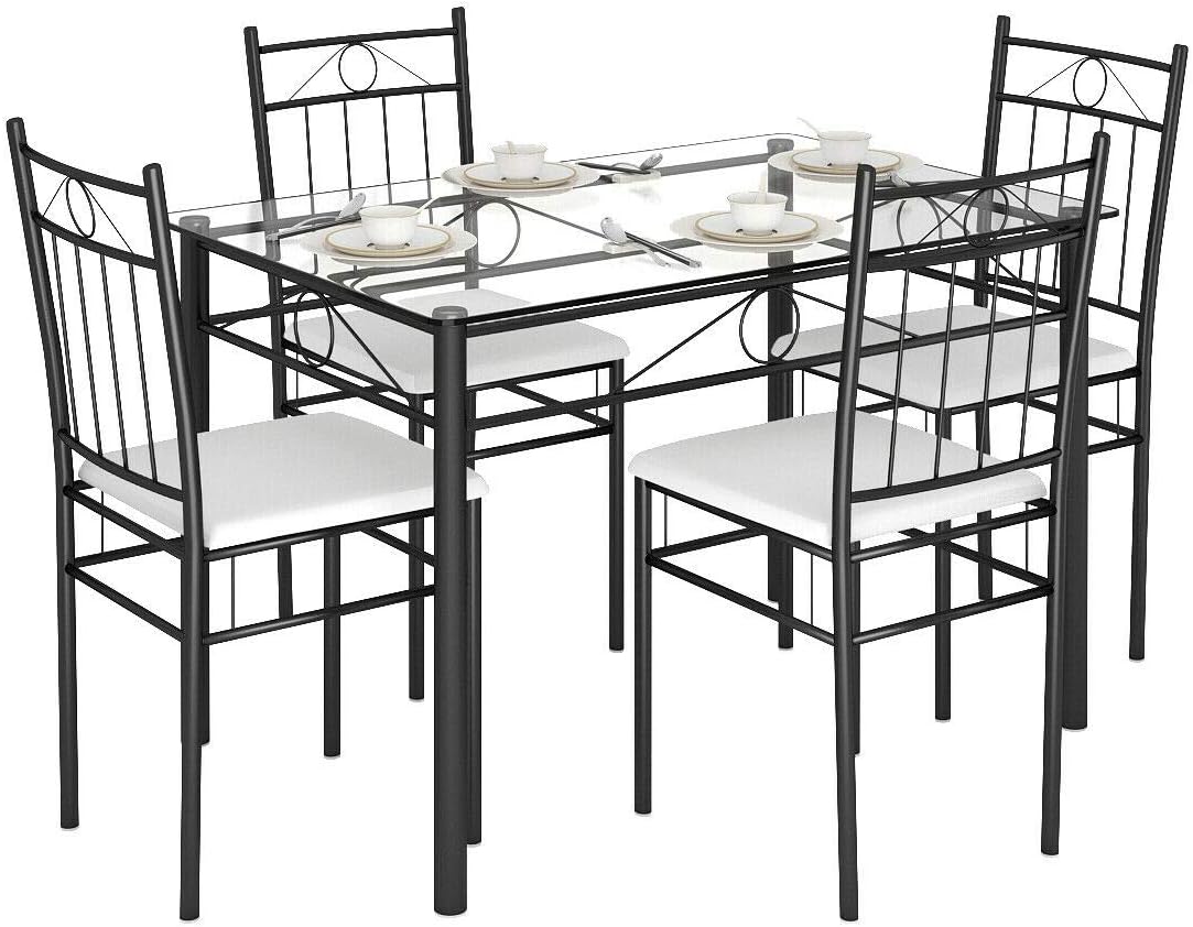 Amazon Com Tangkula 5 Piece Dining Table Set Glass Top Metal