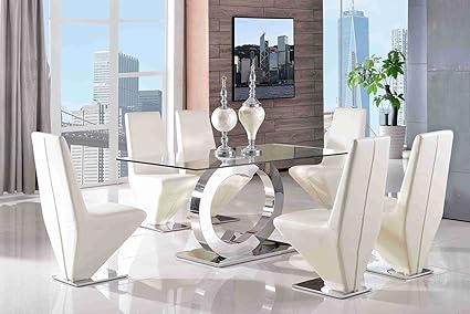 Modern glass kitchen table. 4homart dining table with chairs 7 pcs glass dining kitchen table set modern tempered glass top table and pu leather chairs with 6 chairs dining room furniture white. Get 5 in rewards with club o. The modern dining room table comes in different shapes.