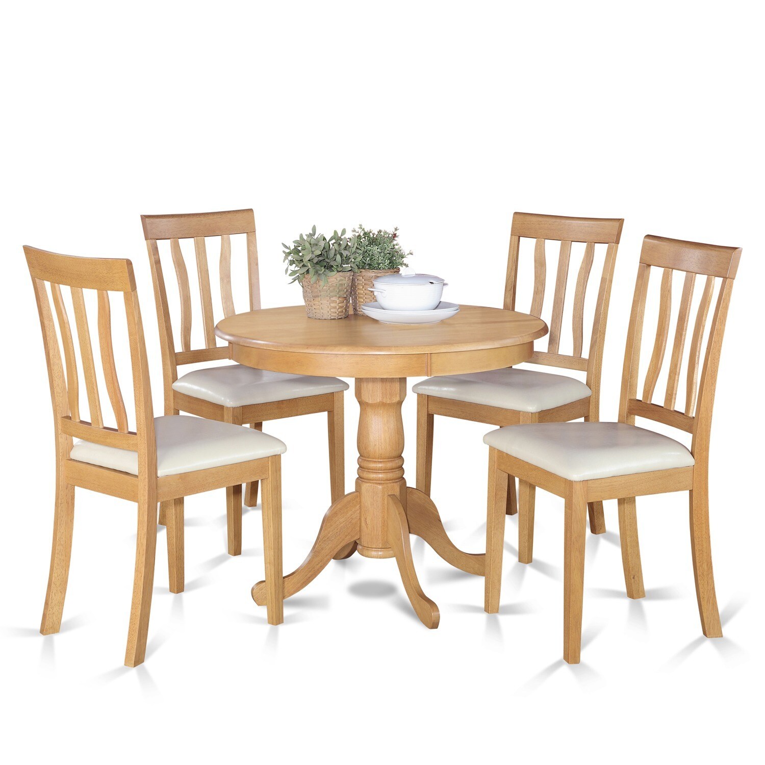 Dlin5 oak w 5 pc small kitchen table and chairs set round table and 4 dinette chairs chairs.