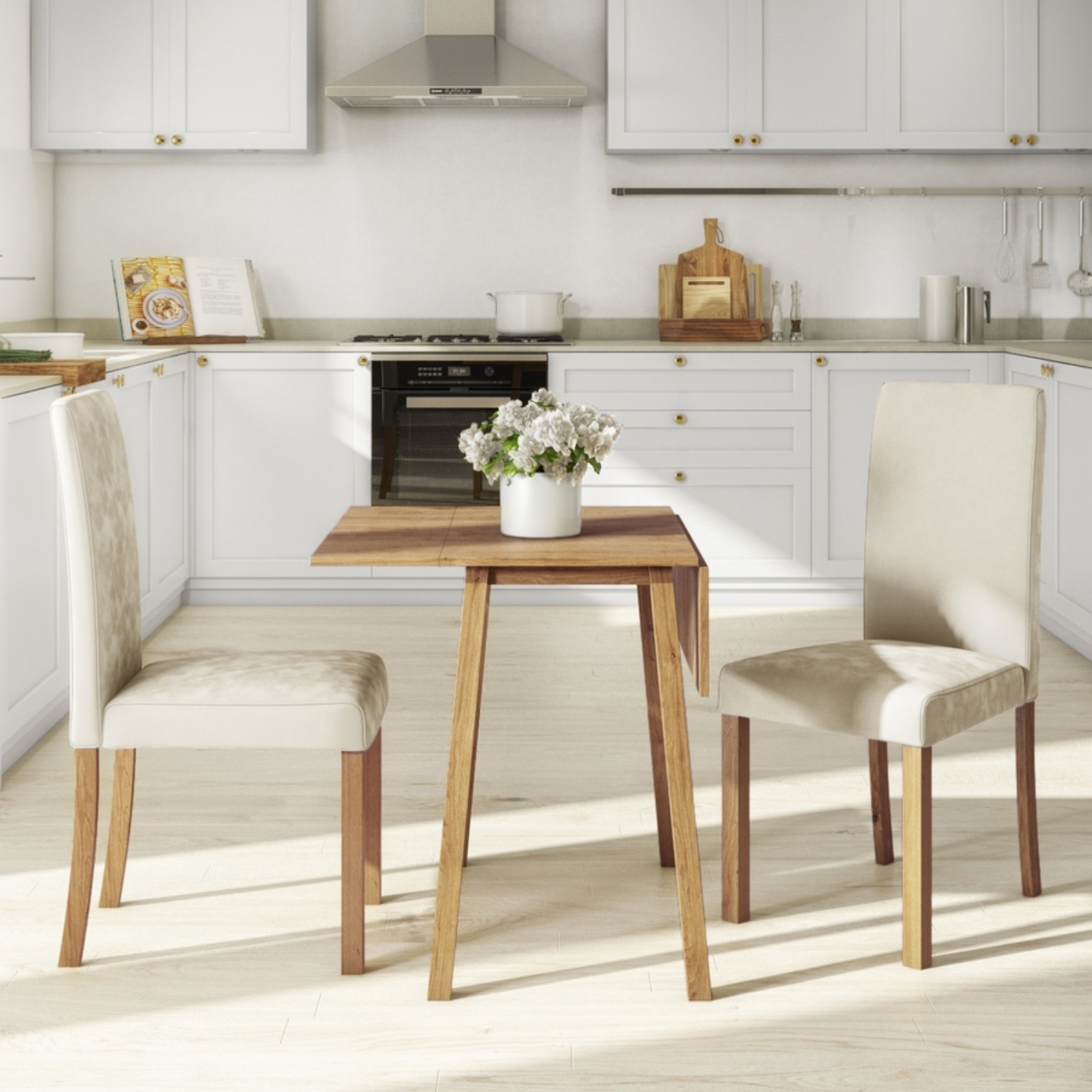 Oak Drop Leaf Dining Table 2 Cream Velvet Chairs Bun Nha010a