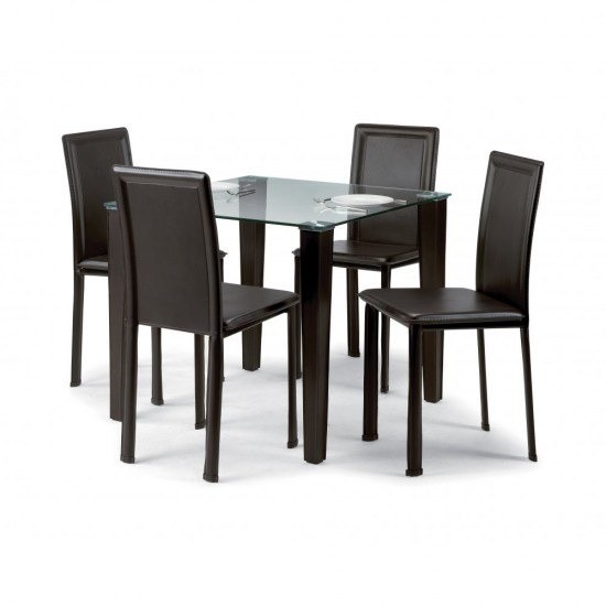 Julian Bowen Quattro Square Glass Dining Table 4 Chairs In